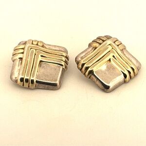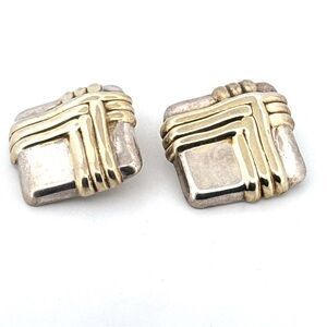 Vintage 925 Sterling Silver very large Puffy Square 2 tone clip on Earrings