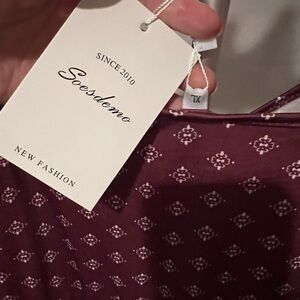 Wine red dress by Soesdemo. Has pockets! Adorable metal rings on spaghetti straps. A-line shape. Size XL. Brand new with tags.