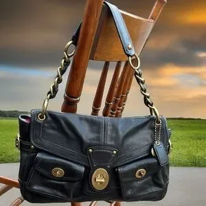 Rare vintage coach legacy 65th anniversary edition “Leigh” black vachetta leather shoulder bag with signature strip lining . Excellent vintage condition with solid craftsmanship. Original hang tags attached.