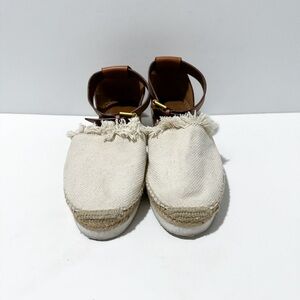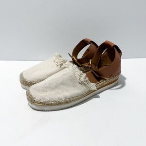 See By Chloe Glyn Canvas Leather Espadrilles Closed Toe Ankle Straps