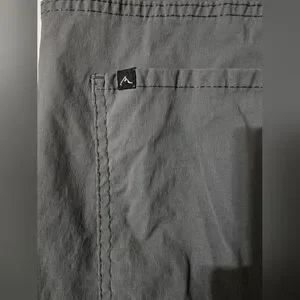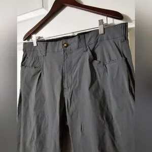 Men's Denali Travel Pants Size 36/30 in Dusty Gray, Great Used Condition, very slight wear and some wear to front button shown in photos, light material, front and back pockets, button/zip fly.