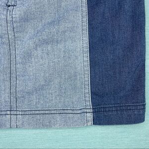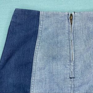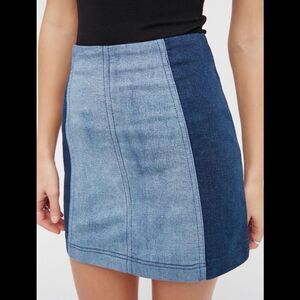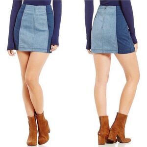 FREE PEOPLE Modern Femme Skirt Colorblock Mini Denim Jean Two Tone Block Size 4