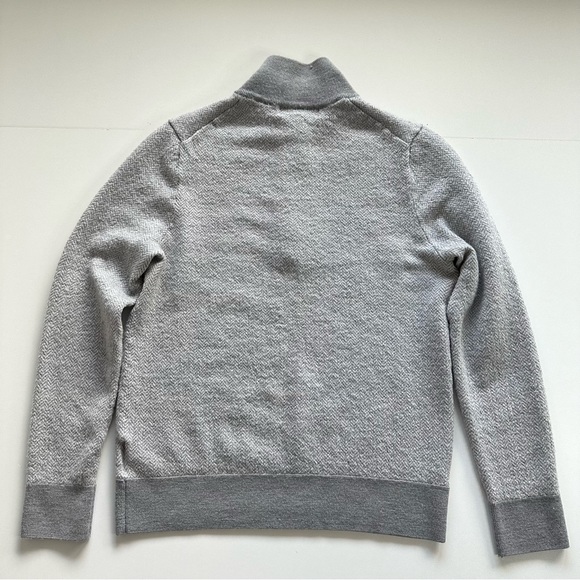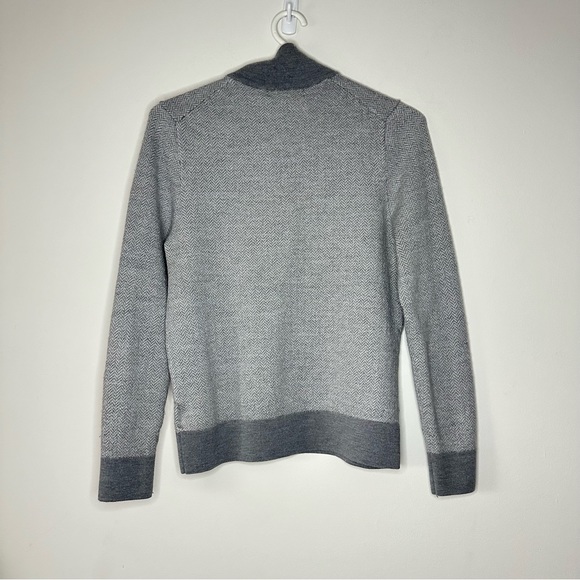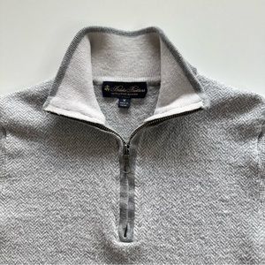 Brooks Brothers Men Grey Size Medium Merino Wool 1/4 Zip Herringbone Sweater