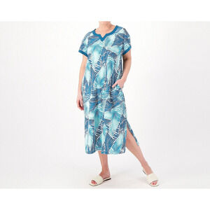 Stan Herman The Hamptons Regular 100% Cotton V-Neck Caftan Aqua/Palm, Small