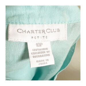 Charter Club Women Teal 100% Linen Embroidered Button Down Casual Blouse 10P