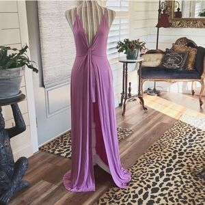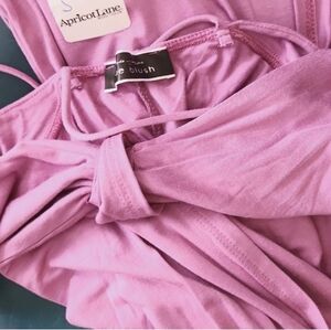 New with tag backless dress with spaghetti straps. This color is so pretty. It's mauvish/ lavendar. Waist laying flat is approx 12". Because it's backless, bust measurement laying flat and not filled is approx 13" in line with the waist.