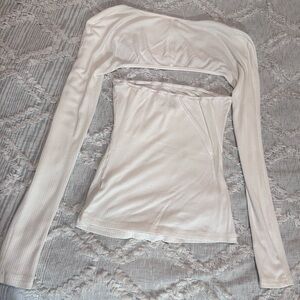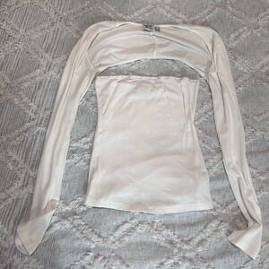 Soft ribbed tube top with bolero long sleeves