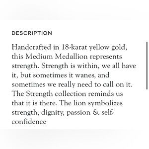 Handcrafted in 18-karat yellow gold, this Medium Medallion represents strength. Strength is within, we all have it, but sometimes it wanes, and sometimes we really need to call on it.