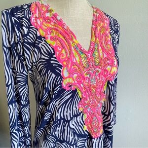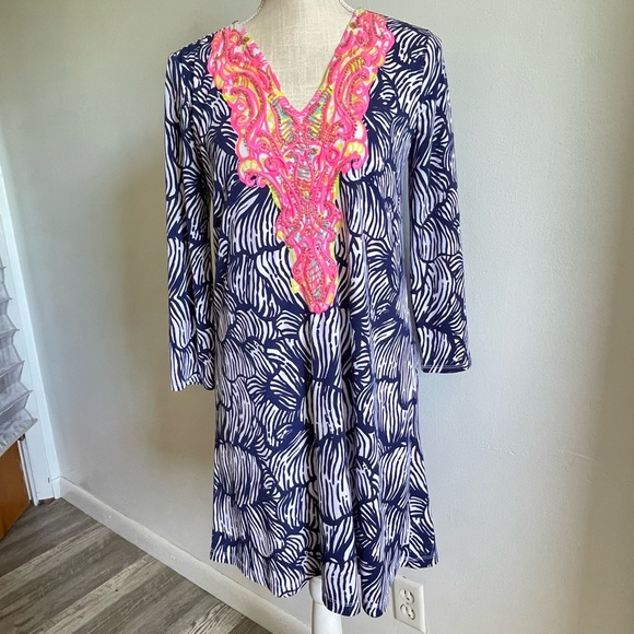 Lilly Pulitzer Bordeaux Tunic Dress Blue Pink Beaded House Of Nemo Engineered S