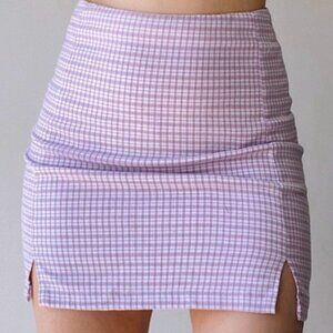 Brandy Melville Purple and White Plaid double front slit mini skirt sz XS - S