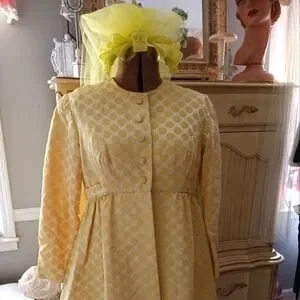 VINTAGE 1960S YELLOW POLKA DOT DRESS AND COAT! " JR. THEME NEW YORK"! UNION MADE