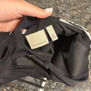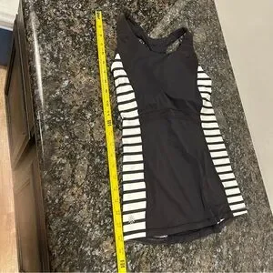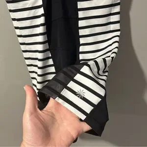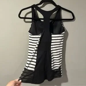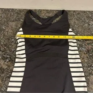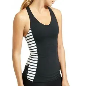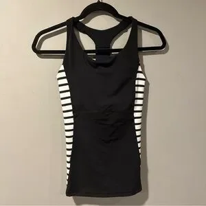 Athleta Ace Racer Back Tank Top Black White Stripes Tennis EUC XS