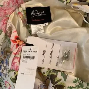 MAC DUGGAL Floral Print Faux Wrap Flutter Sleeve A Line Gown