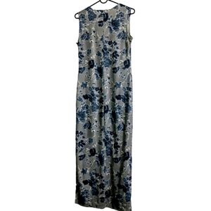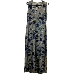 CLE Paris Floral Bodycon Tank Maxi Dress VTG Y2K 90s Blue White S/M