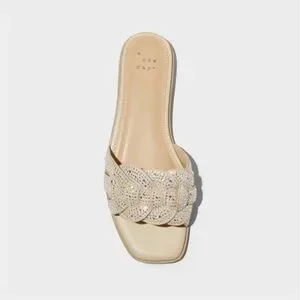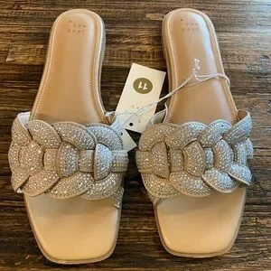 NWT. Women's Maggie Rhinestone Slide Sandals - A New Day™ Silver Size 11.