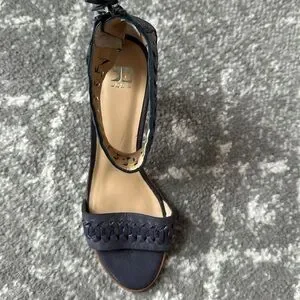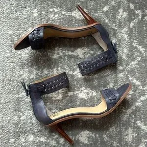 Excellent condition! Super cute heeled shoe. Joe’s jeans brand. Love the bluish grayish color. Leather upper. Ankle strap. Woven look