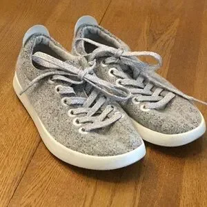 Woman’s allbirds wool pipers in light grey with black flecks in size 7. White rubber bottom. Grey and white laces. Gently worn. Machine washable. I have many quality shoes in my closet! Check ‘em out!