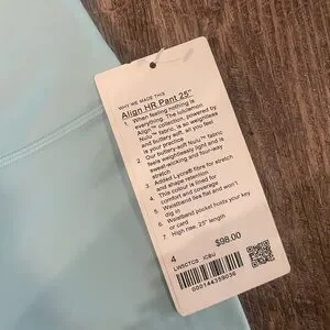 These leggings are brand new with tags. They are size 4 Align HR Pant 25 inch. Thank you for looking at my listing. If you have any questions please let me know.