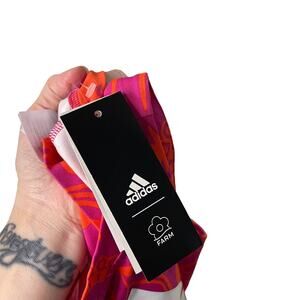 New With Tags Women's Farm Rio X Adidas Pink and Orange Tropical print body suit. Sleeveless. Open back. 2 Bottom snaps. Very stretchy
