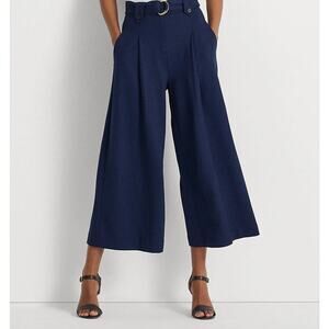 Ralph Lauren Belted Pleated Ponte Cropped Pant | Womens M, Navy Blue NEW $165