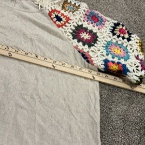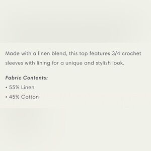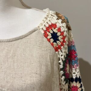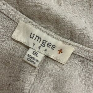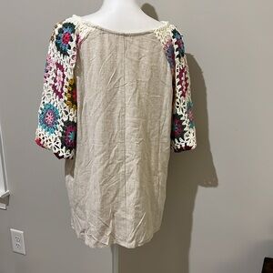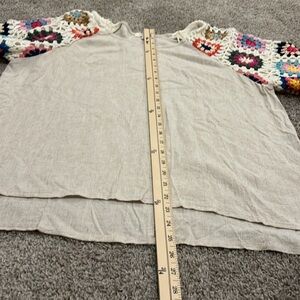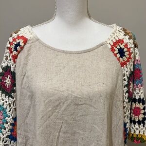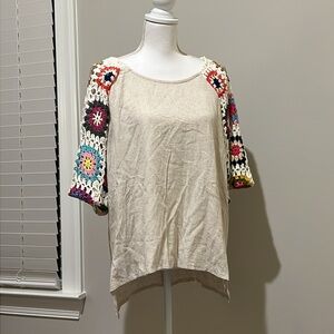 EUC Women’s UMGEE $70 Linen Blend Crochet Sleeve Top Plus Size 1XL Boho Beach