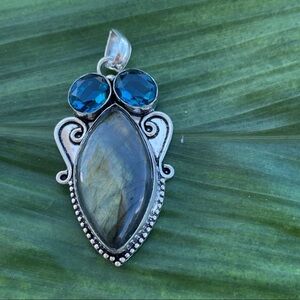 Sterling Silver Jewelry 925 Labradorite Gemstone Pendant London Blue Topaz.
