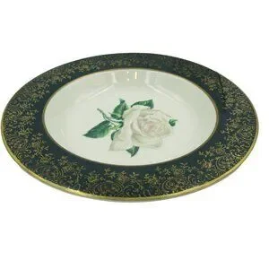 Stradford Rim Soup Bowl Chantilly Dark Green Gold Floral