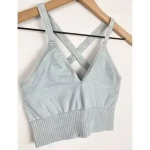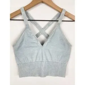 Free People Movement Good Karma Crop Tank, Ice Grey Blue - Size M/L