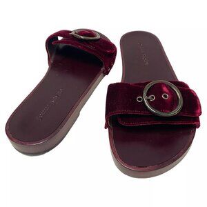 $375 Jenni Kayne Womens Bordeaux Slides Velvet Burgundy Size 9.5 EU 39.5 Flats
