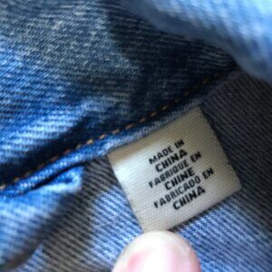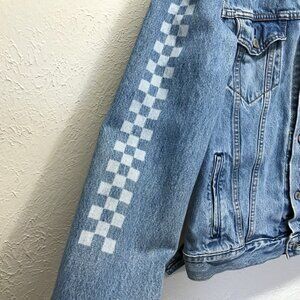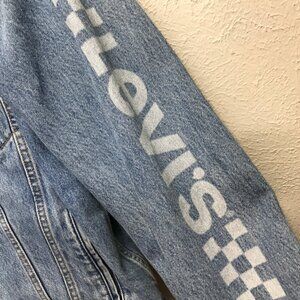 Levi's Trucker Jacket Size L Motocross Printed Sleeve Blue Denim