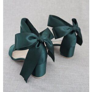 Kailee P Naomi Satin Block Heel Sandal with Wrapped Ribbon Tie Green Size 9 NIB