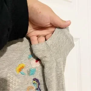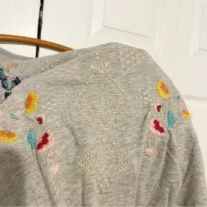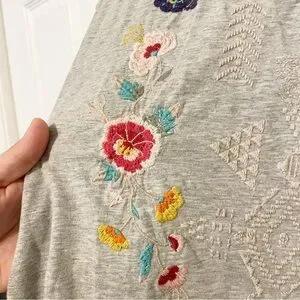 Johnny Was Embroidered Short Sleeve T-Shirt Size XS Gray Scoop Neck Floral Tee