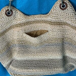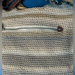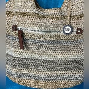 ๐ The Sak crochet bag ๐ผ n a neutral stripe. Bag has double woven handles and silver tone hardware. Exterior has a top zipper closure and a front zipper pocket. Back has a slip pocket. Interior has a back wall zipper pocket and front wall has 2 slip pockets. Purse is very clean with no signs of wear. No stains or picks. Great preowned condition. ๐