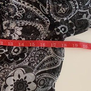 EUC Notations Sheer Long Sleeve Black/White Button Down Blouse Size Small - Button Sleeve Cuff - Ruffle Around Neck and Top - See Pictures and Below For Approx. Measurements