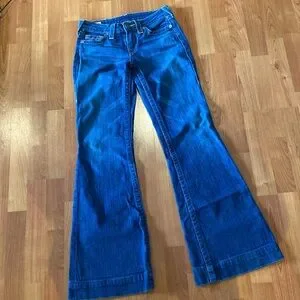True Religion Wide Leg Jean. This is a great Jean to dress up or down. Slightly stretchy, finished hem. EUC- Luke New.