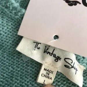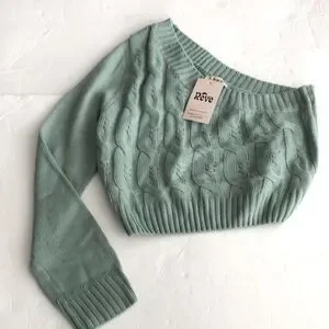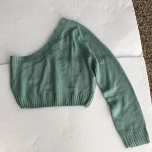 The Vintage Shop Reve One shoulder cable knit sweater in a pretty shade of green Has one long sleeve Size Large Armpit to armpit measures approx 18” lying flat without stretch Length from top of shoulder to bottom is 18” Super cute New with Tag Fast same day/next day shipping!