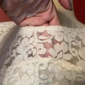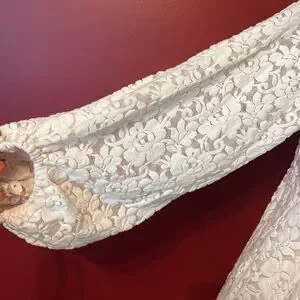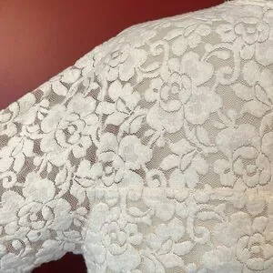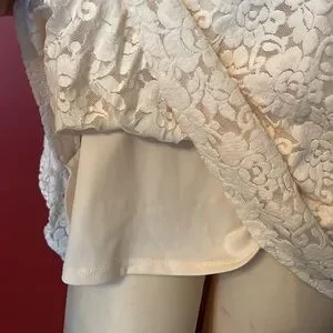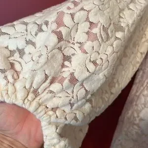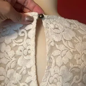 I love this top! Just never wore. The sleeves have elastic bottom. This is a lined top. The top layer is very soft! The back has a keyhole with elastic button closure. Approximate measurements are 21 inches pit to pit and 26 inches from shoulder to bottom of top. As always, smoke and pet free home. Same-day shipping!willing to negotiate prices