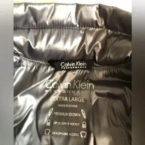 Calvin Klein Performance Vest. Premium down vest. The vest has a hole in the pocket for headphones secure your phone while connected to your headphones. New without Tags