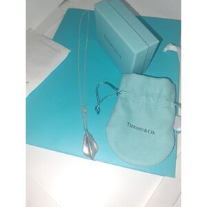 Rare Gorgeous Tiffany & Co. Sterling Silver Large Leaf Drop Pendant Necklace 16-inch chain and 1-inch large leaf. Includes Tiffany Signature soft Puch storage bag plus Tiffany box. Included is the Tiffany & Co Tucson location inspection and polishing receipt. MY TIFFANY JEWELRY IS INSPECTED & CLEANED AT TIFFANY & CO-LOCATED AT LA ENCANTADA MALL TUCSON, AZ AND RECEIPTS ARE ATTACHED IN THE PHOTOS HARD COPIES ARE INCLUDED PLUS Tiffany & Co Inspection Receipt and soft storage Tiffany's cloth bag. ENJOY THIS FABULOUS FIND!!