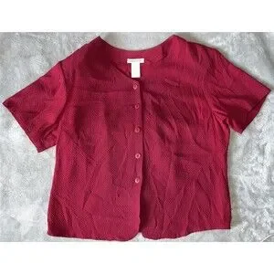 Ship N Shore Vintage 80s Womens L Blouse Red Button Up Rayon Top Back Bow Tie