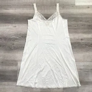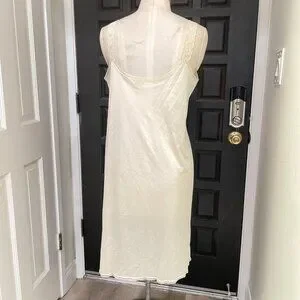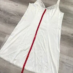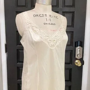 Cream white satin slip dress / nightgown with lace trim. Vintage, made in the USA.