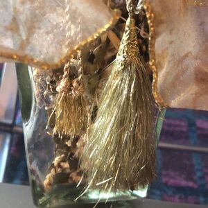 Tags: glass jar, apothecary, dried flowers, golden, tassels, bows, accent, decor,