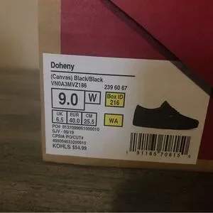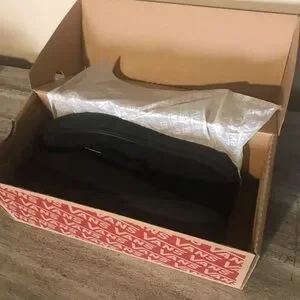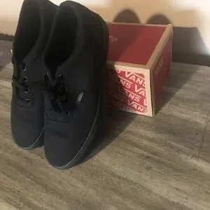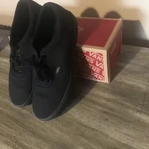 These are some brand new, never worn, still in the original box, plain black lace up Vans. Got them for someone as a gift and learned too late to return them that they were the wrong size, smoke free home.