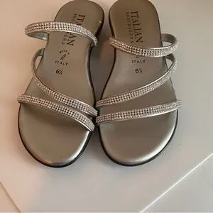 NEW Silver Rhinestone Slip-On Sandals Women’s Size 6.5