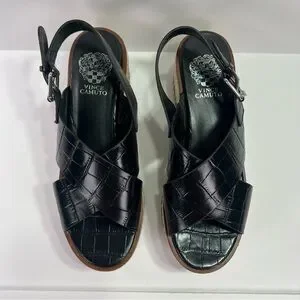 Vince Camuto Marietten Embossed Espadrille Platform Sandals - black croc, 8.5
