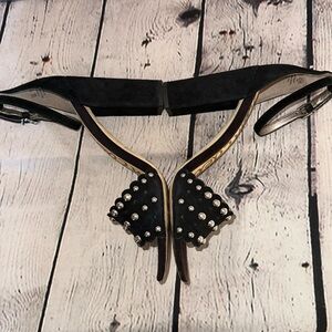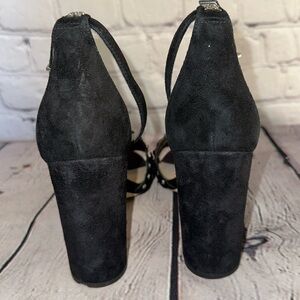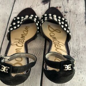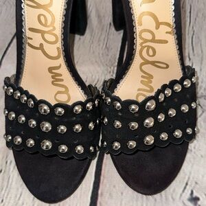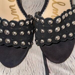 Sam Edelman Leather Wrapped Heels with Studded Accents and Ankle Strap that features the Logo Details in the back.