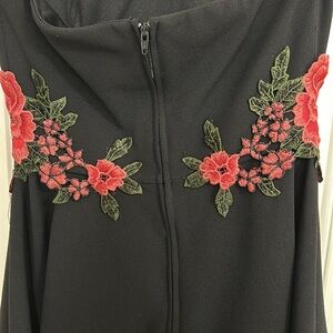 Worn once B. Darlin Black Spaghetti Strap Embroidered Rose Belt dress Size 3/4