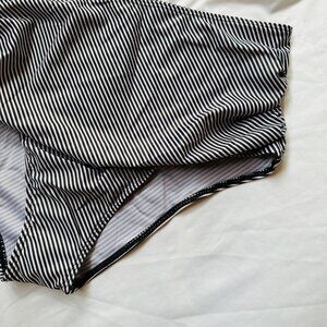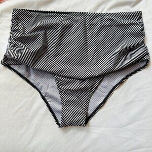 Black & White Striped High Rise Swim Bottoms NWOT Swimsuit Size L
