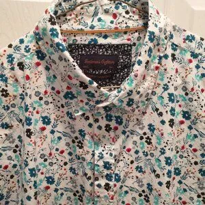 Gently used Gentlemen's Outfitters men's short sleeve button up shirt, size large. This all season shirt is 100% cotton with a floral print. Made in India. Excellent condition. Please see pictures.