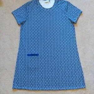 Cabana Life worn once, 85% polyester, 15% span. Dress or golf dress. Royal blue and white printed short sleeve very comfy